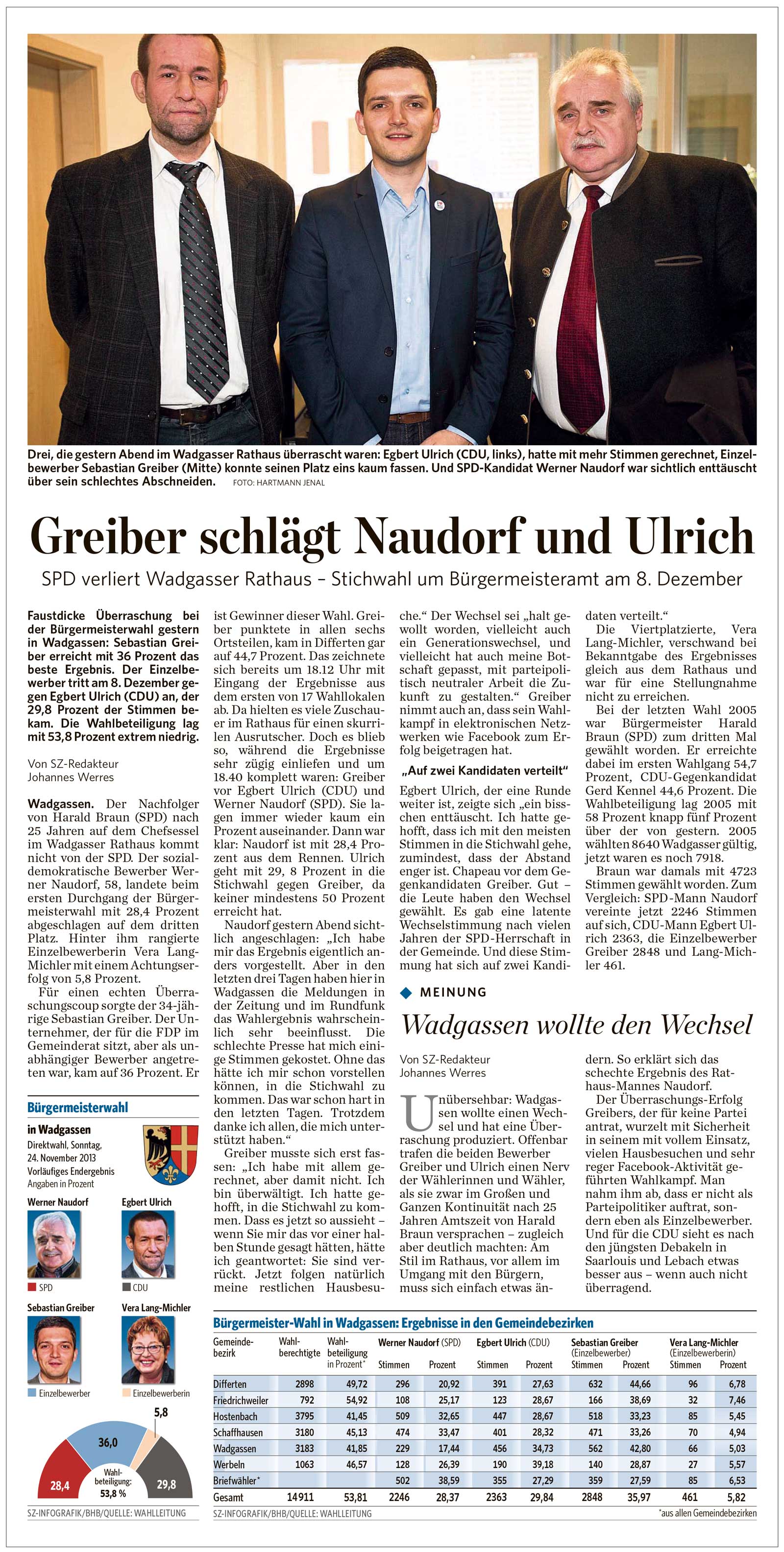 Saarbrücker Zeitung: Greiber schlägt Naudorf und Ulrich