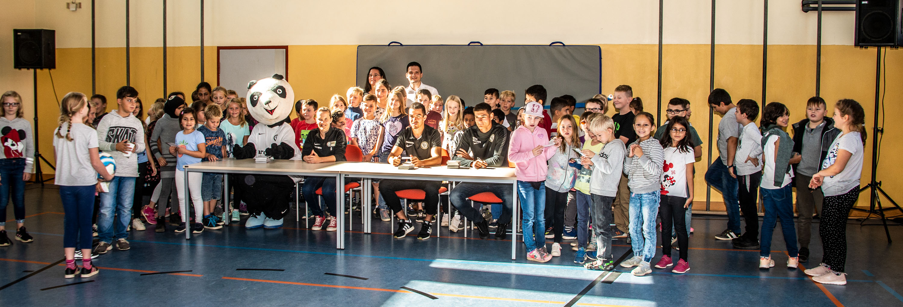 Natürlich gab es auch jede Menge Fragen an die Profis: „Wie viele Tore haben Sie schon geschossen?“, „Wann habt ihr mit dem Fußball spielen angefangen?“ oder „Was ist eure Lieblings-Mannschaft?“ – die Jungen und Mädchen hatten viele Fragen parat und bekamen alle beantwortet. Als Belohnung gab‘s dann natürlich noch Autogramme von den Fußballstars.