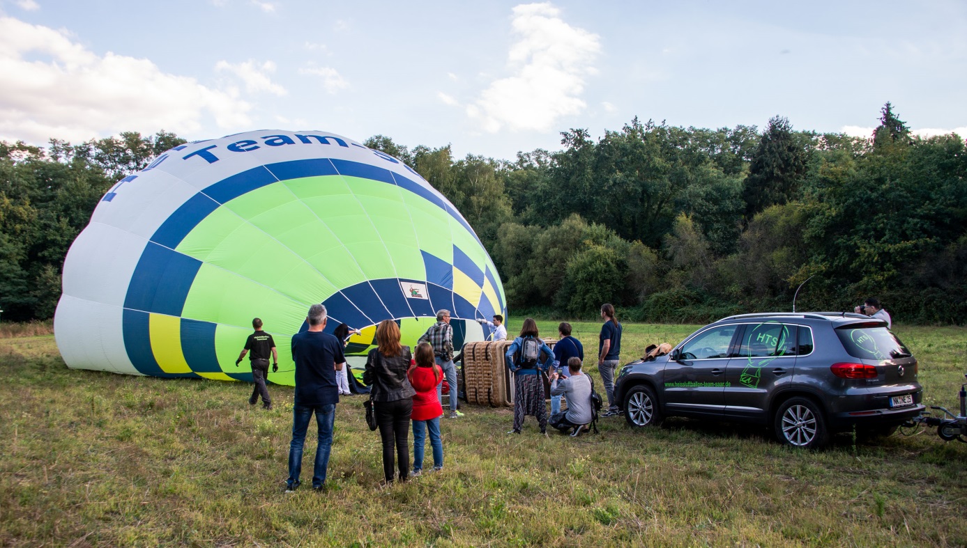 Ballonfahrt Buergermeister Sebastian Greiber: Der Start erfolgte bei Beaumarais, die Ballonfahrt ging dann in Richtung Wadgassen/ Ueberherrn. Foto: Rolf Ruppenthal/ 14. Sept. 2018