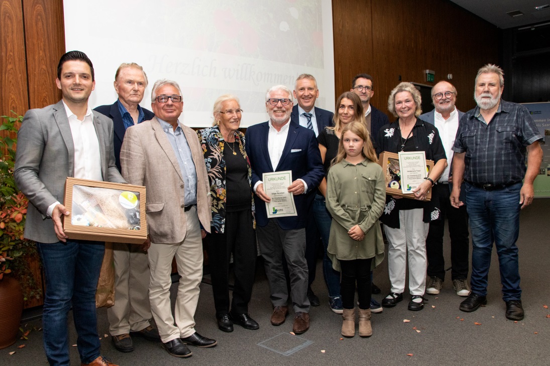 Bei den großen Gärten konnte sich Edgar Revelant – ebenfalls aus Schaffhausen – über die gleiche Platzierung freuen. Aber auch den Teilnehmern ohne Platzierung gratulierten Umweltminister Reinhold Jost, Landrat Patrik Lauer und unser Hostenbacher Kreistagsmitglied Willi Hill. Auch von mir an dieser Stelle aus nochmals ein großes Kompliment und Dankeschön an unsere Naturschützer und Gärtner.