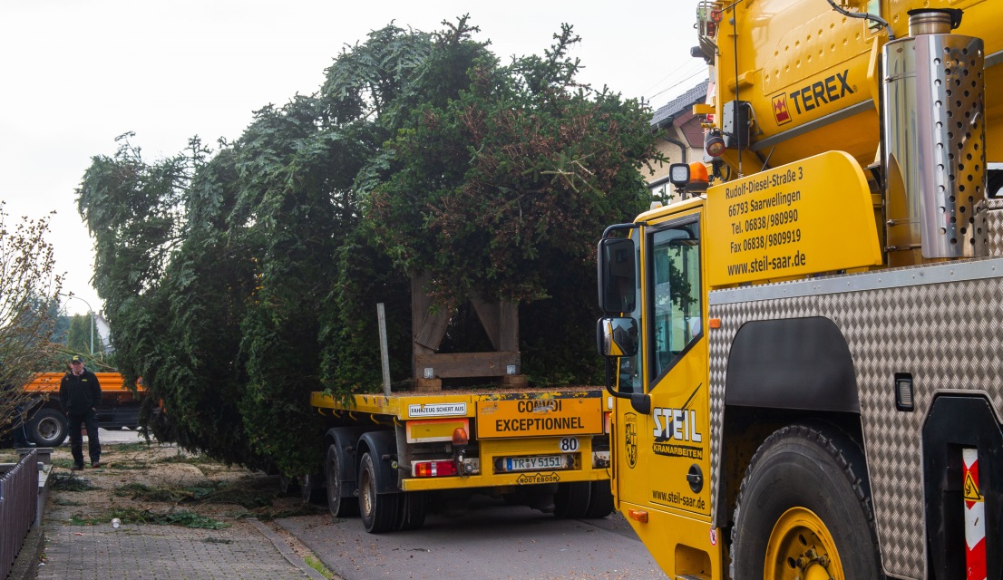 Bleiben wir in Hostenbach. Dort hatten meine Mitarbeiter in der vergangenen Woche Schwerstarbeit zu leisten. Ein neuer Weihnachtsbaum für unseren 16. Weihnachtsmarkt an diesem Wochenende musste vor dem Abteihof aufgestellt werden. Und das war gar nicht so einfach: Einst war der Tannenbaum als knapp zehn Zentimeter großes „Tannenbaum-Baby“ aus dem Schwarzwald mitgebracht worden. Jetzt, knapp ein halbes Jahrhundert später, war ein mächtiger Autokran notwendig, um ihn in Hostenbach aus dem Garten über die Wohnhäuser auf den bereitstehenden Tieflader zu hieven. Aber nicht genug damit: Der fast 20 Meter hohe Tannenbaum mit einem Gewicht von fast fünf Tonnen musste mächtig gestutzt werden, damit sich der Transport überhaupt in Bewegung setzen konnte. Den „Tannenbaum-Eltern“ danke ich ganz herzlich für die Spende dieses schönen Weihnachtsbaums.