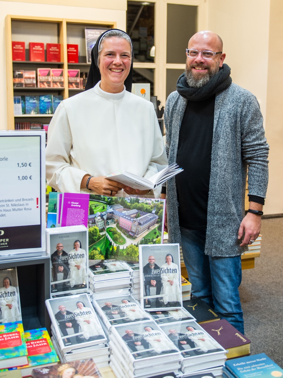 Bleiben wir beim Kulturellen. In Saarlouis, stellte die Ordensschwester Ursula Hertewich  gemeinsam mit ihrem Co-Autor Mirko Kussin ihr Buch ZWEI SICHTEN – Gedanken über Gott und die Welt vor.