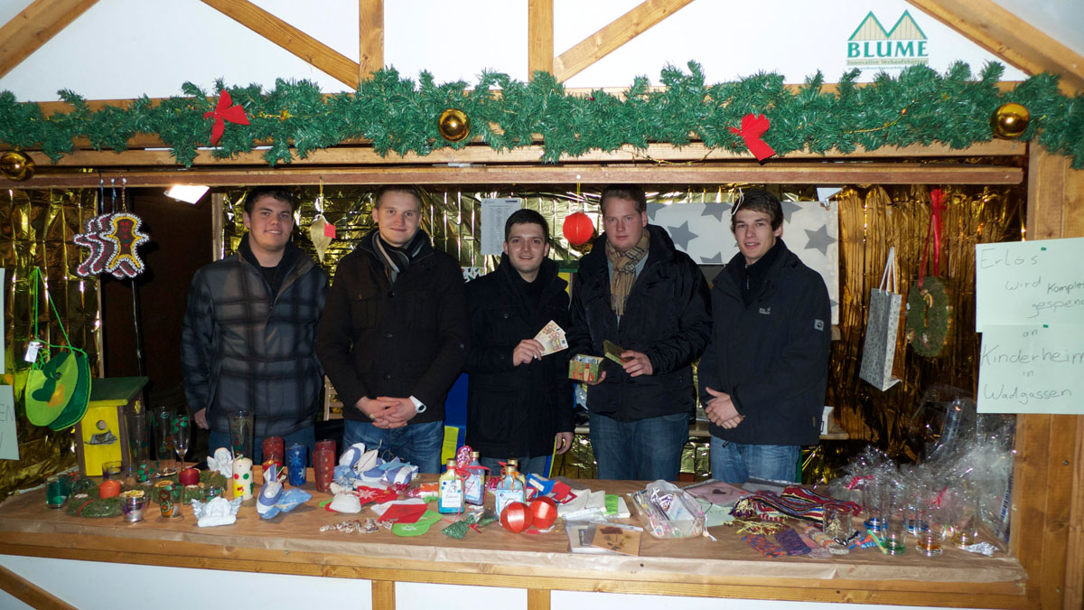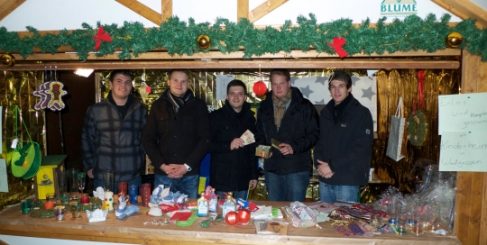 Sebastian Greiber mit JuLis aus Wadgassen mit einem eigenen Verkaufsstand auf dem Weihnachtsmarkt Saarlouis zu Gunsten des Haus Mutter Rosa in Wadgassen