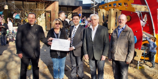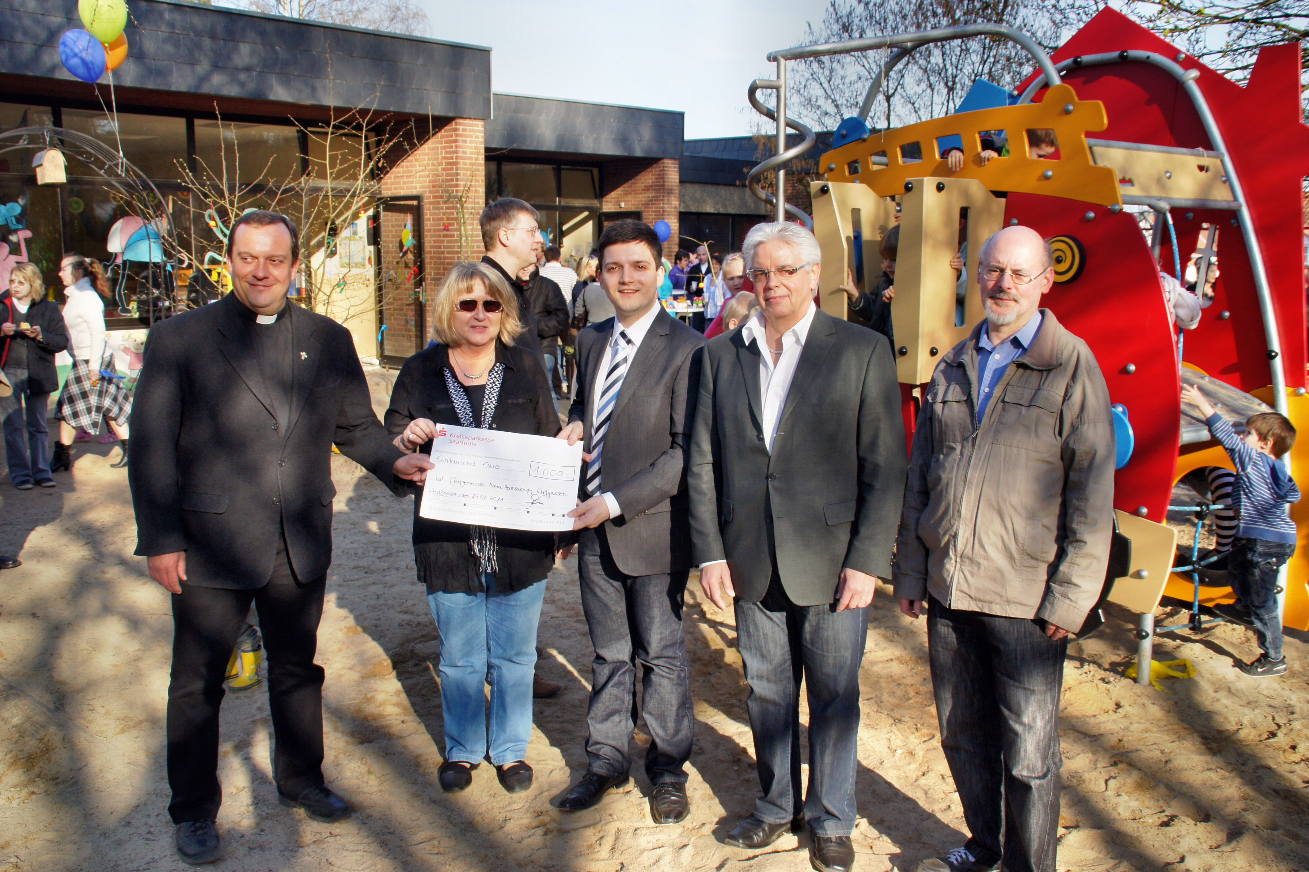Sebastian Greiber übergibt eine Spende in Höhe von 1000,00 € für den neuen Spielplatz im Kindergarten Maria Heimsuchung in Wadgassen