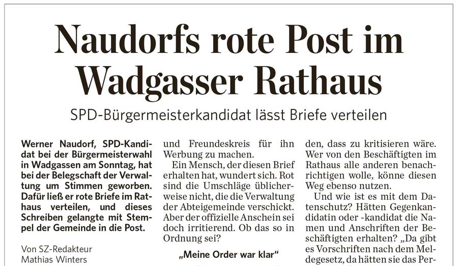 Liebe Mitbürgerinnen und Mitbürger, ich möchte mich an dieser Stelle sehr herzlich bei allen Wählerinnen und Wählern bedanken, die mir am vergangenen Sonntag ihre Stimme geliehen haben. Ich freue mich sehr über dieses gute Ergebnis und dass Sie mir damit den Sprung in die Stichwahl am 8. Dezember ermöglicht haben. Ich möchte mich auch bei den beiden ausgeschiedenen Mitbewerbern, Frau Lang-Michler und Werner Naudorf, für den fairen und sachlichen Wahlkampf in den letzten Wochen und Monaten bedanken. Herzliche Grüße Sebastian